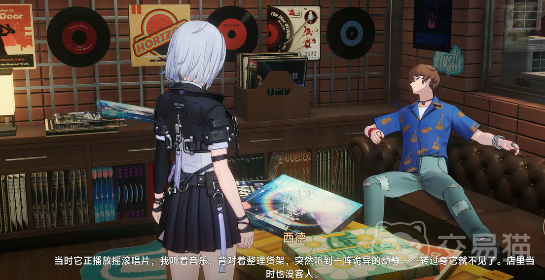 在《异环》的开放都市中,隐藏着许多容易被忽略的支线故事,其中“唱片店的异动”便是极具叙事巧思的一条。本任务起始于桥间地半角街海默塔旁的黑胶唱片店——店主西德正为失窃的珍贵藏品焦灼不已:一张具有特殊意义的黑胶唱片及配套唱片机不翼而飞。接受委托后,玩家需以声音线索为引,在城市多个地点展开细致调查,逐步拼凑出失物去向。