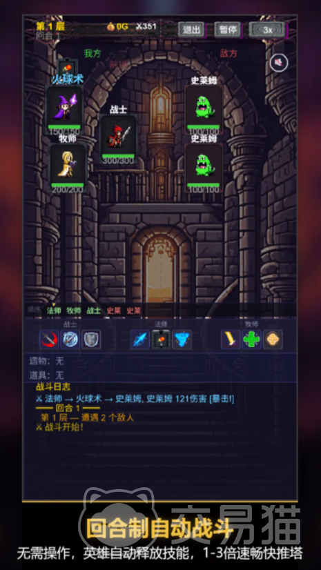 战斗全程为自动释放模式,玩家专注策略决策:包括职业搭配、遗物取舍、事件应对及路线规划。全盘设计遵循轻操作、重思考原则,单局时长稳定控制在8至10分钟区间,适配通勤、午休等典型碎片化使用场景。游戏中内置十余种功能型道具,其触发逻辑与生效条件均随局内变量实时变化,进一步强化Roguelike不可预测性。