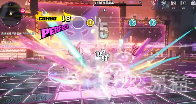 战斗采用节奏驱动型机制,所有操作均响应实时音律反馈。界面顶部持续显示动态指令条,包含闪避、普攻、跳跃三类基础动作提示。精准执行任一指令均可延续连击链,连击数直接关联伤害倍率:实测连击达20次时,单次攻击伤害提升显著,整体输出效率明显增强。该机制强调操作连续性与节奏同步性,而非单纯反应速度。