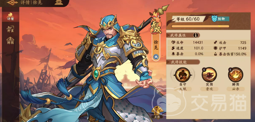 徐晃作为副坦协同夏侯惇形成双前排体系。其天赋可在登场时,为除自身外所有生命低于25%的目标施加护盾,护盾值为施放者最大生命的15%,持续两回合;该效果拥有4回合冷却,需精准把握敌方集火窗口释放。此外,战斗开始时,与徐晃同排或同列的友方单位均可获得10%常驻伤害减免,进一步强化整体防线厚度。