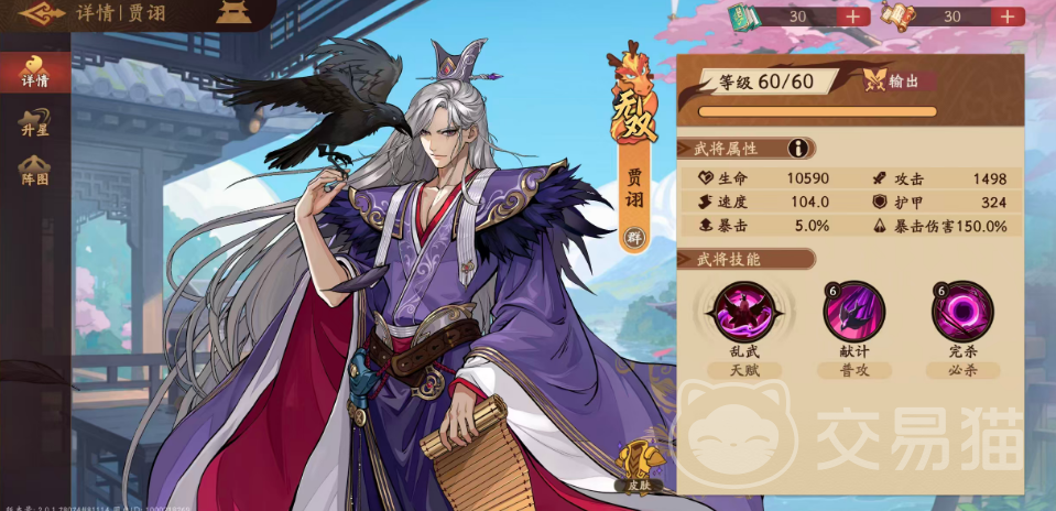 贾诩则负责补充持续性范围压制。其“乱舞”效果在每回合开始时自动触发,对敌方全体造成相当于自身攻击力10%的伤害,并有35%概率为目标附加“毒谋”状态。该状态后续将转化为高额持续伤害,与郭嘉的怒气供给形成联动,使队伍在中后期具备稳定的AOE压制力与斩杀潜力。