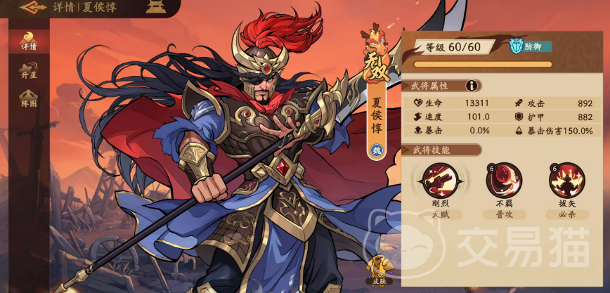 该阵容以“前排双防+中辅增益+后排双输出”为基本结构。夏侯惇担任主坦,其被动反击机制触发概率为50%,每次反击伤害由自身攻击力的25%与当前生命值的10%共同构成;同时,当其生命比例每下降30%,可叠加一层地形减伤状态——若处于元素地形,则所受伤害降低20%。这一特性使其在前排承伤过程中具备显著的生存韧性与反打节奏。