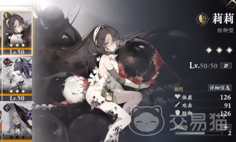莉莉作为弗朗西斯之女,自幼处于严密的精神规训之下。其立绘视觉语言高度符号化:周身悬浮着布满血痕与残齿的黑色眼球,暗示被长期监视与意识侵蚀的状态。角色设定为混沌界域SSR稀有度,定位为高生存能力的防御型单位,可通过限时活动或常驻召唤获取。基础属性中,体质与防御值显著高于同类角色,攻击力亦维持在梯队上游水平。技能机制围绕“忍耐”系统展开:主动技【淤泥上的不灭之花】可提供36%最大生命值护盾,并恢复10%忍耐层数,同时清除当前忍耐状态(注:忍耐层数随生命损失逐点累积)。