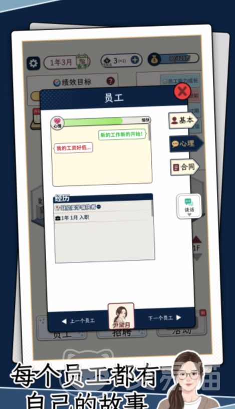 在职场模拟类手游中,《HR模拟器》以独特视角切入人力资源管理领域,让玩家沉浸式体验招聘、用人、留人全流程。游戏采用卡通风格竖屏界面,搭配密集的文字交互与剧情分支,构建出高度拟真的HR工作场景。玩家将扮演一家初创企业的核心HR负责人,从筛选海量简历开始,逐步搭建高效团队,推动公司由小到大稳健发展。