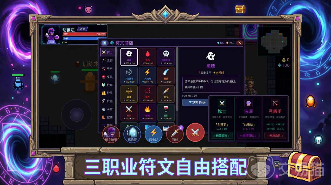 《暗黑裂缝》核心玩法围绕三大基础职业展开:战士可侧重坚盾防御或高势重击;弓箭手支持爆发输出与战场控场双路径成长;法师则能在广域AOE与单体元素强化之间灵活切换。随着角色等级提升,装备强化进程同步推进,技能组合呈现指数级拓展可能,每一次地下城探索都需结合实时战况调整配装与加点策略。