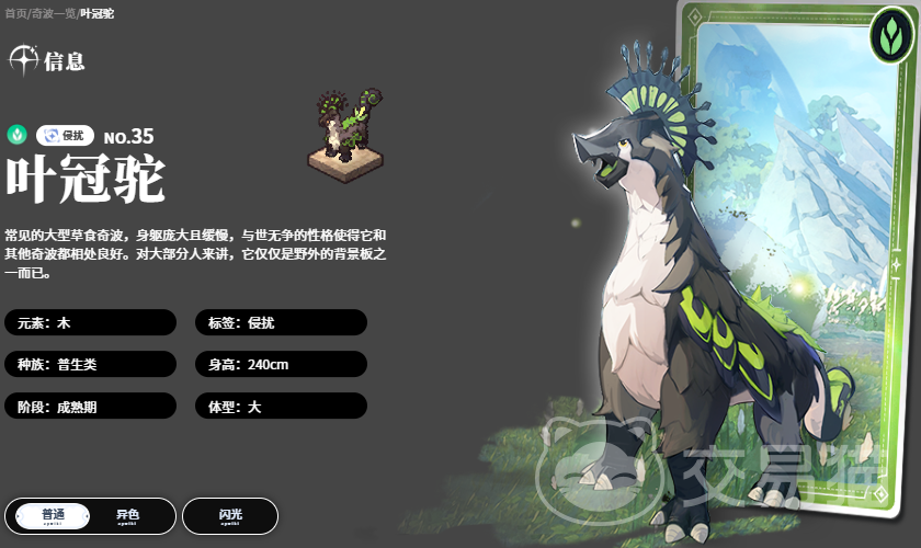 木系奇波“叶冠驼”定位为团队生存中枢。技能组合治愈守护、株连灵木、灵木弹与叶冠碎击,兼顾防御强化、伤害削弱与群体治疗。其中,治愈守护可恢复队友5.3%最大生命值;株连灵木提供10秒嘲讽效果,有效转移敌方集火目标;灵木弹可在扇形区域内发射12发弹体,对命中单位施加高额木属性伤害,并同步赋予我方全体角色受伤减免效果,持续时间长达15秒。该配置显著提升持久战中的容错率与续航能力。