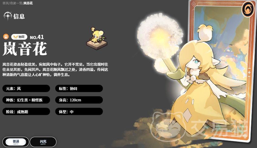 风系奇波“岚音花”专精于领域构建与全队增益叠加。飞绒漫舞、风刃扩张、小风弹与花灵斩击构成其技能框架,可生成覆盖型风场,对范围内敌人造成高频风属性伤害。同时,其风属性伤害加成初始为4%,最高可叠加至五层,每层持续15秒,满层状态下大幅提升风队整体输出效率。此外,岚音花还能为自身及队友提供攻击力提升、暴击率增强与技能冷却缩减三项核心辅助效果,是风元素队伍成型的关键支点。