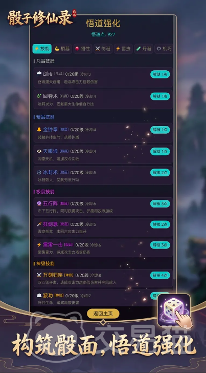 养成系统打破常规数值堆叠逻辑,心法修炼深度嵌入剧情分支与爬塔进程。玩家掷出的骰子结果直接影响可选叙事路径,每条路线最终导向不同的功法成就与境界突破,全游戏共设超10种差异化修炼结局,具备较高探索价值与重复游玩动力。