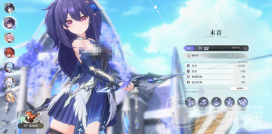 末音作为电系代表角色,主打高频节奏压制。五段普攻可叠加电蚀印记,每层提升自身暴击率;小技能斩击命中后额外赋予目标易损状态,降低其物理防御;多段电属性伤害同步触发破防效果,使敌方防御削减量随印记层数阶梯式提升。此外,其技能冷却缩减机制显著优化了技能链密度,在高压战斗环境中可持续施加多维压制压力。