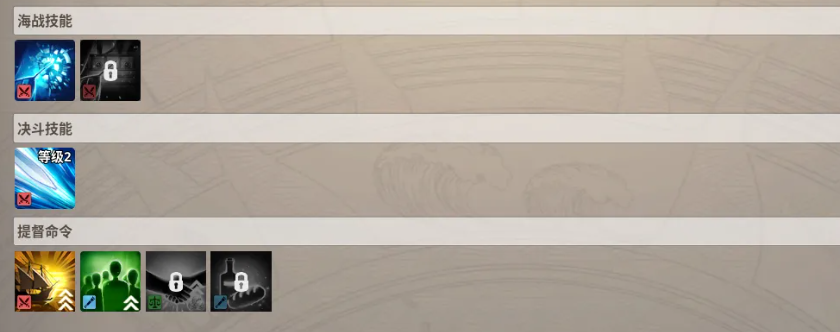游戏内船员技能分为两大基础类型:主动型技术技能与被动型专业知识。前者需手动释放,具备明确战术用途;后者则持续生效,主要为船只提供属性增益。每项主动技能最多可升级4次,每次升级均会强化核心效果数值。值得注意的是,同一艘船上若搭载多名具备相同技术类型的同伴,该技术的总威力将产生叠加效应。因此,在组建船队时,应避免过度堆叠同质化技能,而需注重功能互补。当前技能体系划分为三大类:决斗技术、海战技术与提督命令。根据实战反馈与机制权重,推荐优先投入资源提升决斗技术。