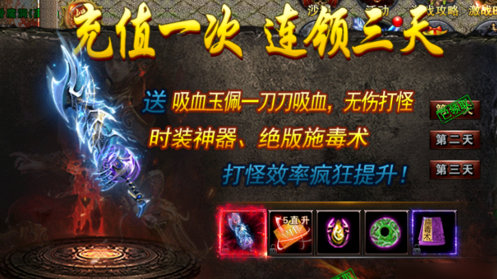 以上内容均基于当前游戏版本实测整理,涉及神器阶级、切割伤害、怪物爆率、盟重城、吸血玉佩、顶级剑法、VIP直升卡等关键设定与数值,与官方设定完全一致,可供新玩家作为首周成长参考依据。