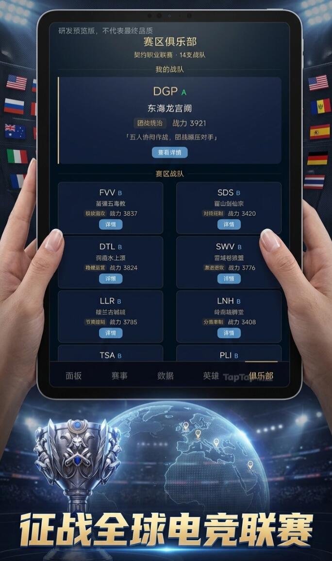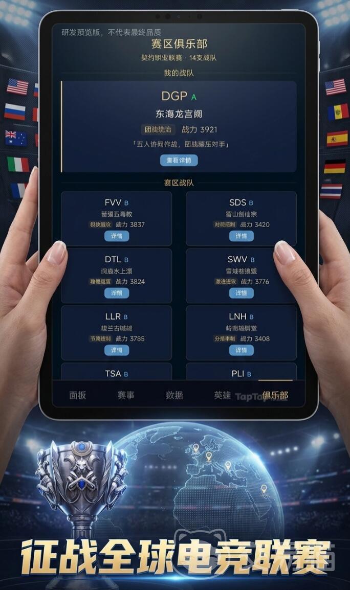 当前,《英雄契约:全球电竞经理人》仍处于上线筹备阶段,具体发布时间暂未官宣。预约用户可优先获得赛季通行证、限定教练皮肤及初始青训营资源包等专属权益。游戏内嵌的赛事体系严格对标现实电竞架构,包含升降级制度、积分循环赛、季中杯与年度总决赛等多层级竞争路径,所有运营行为最终都将映射至俱乐部世界排名变动,形成闭环式成长反馈机制。