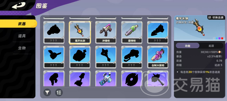 需注意:梅无寒激活第二天赋后,远程攻击能力将出现数值削弱,进一步凸显其近战专精定位。因此,构建该流派时必须解锁并启用其第二天赋,方可释放完整输出潜力。武器配置方面,应优先匹配高攻速、短距离爆发型近战装备。前期未解锁大量武器时,光剑与利爪为最优解——二者不仅可同时装备于梅无寒,还支持同步升级,六件同类型武器的协同适配性亦保持高位,操作容错率与持续压制力兼备。