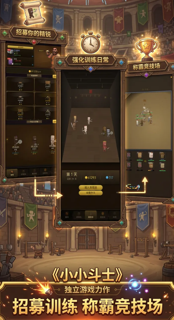 《小小斗士》是一款兼具宏观经营思维与微观战术应变能力的策略型手游。它要求玩家在长线建设中保持资源分配的理性,在随机战斗中展现临场判断的敏捷。当前游戏已全面开放下载,欢迎广大策略爱好者进入角斗世界,尝试不同流派组合,打磨专属养成路径,在三十日周期中书写独一无二的荣耀篇章。
