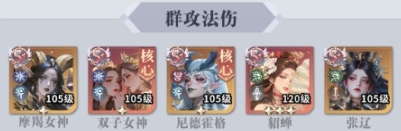 针对追求极限群体清场效率的玩家,“群攻法伤”体系提供了另一条高效路径。该阵容以摩羯女神为核心辅助,专注提升全队施法频次;辅以双子女神与尼德霍格两位具备强力范围法术的角色,形成高频绝技轮转。青行灯虽非该体系唯一辅助位,但其提供的攻击属性加成可切实提升摩羯女神与双子女神的法术基础伤害,进一步放大群攻覆盖率与秒杀阈值,达成快速清屏目标。