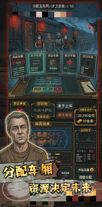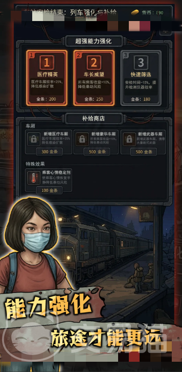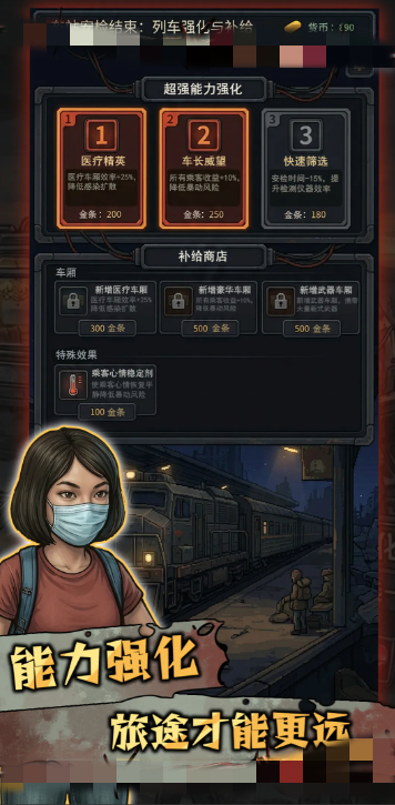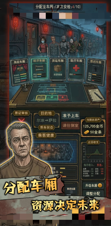 列车内部空间有限,物资极度紧缺。玩家需在“载客量”“健康者配给”“感染者隔离”三重约束下进行动态平衡。系统支持搭建专用隔离舱,必要时可启动紧急清除协议,确保主体车厢安全。所有操作均需兼顾伦理权衡与生存理性。