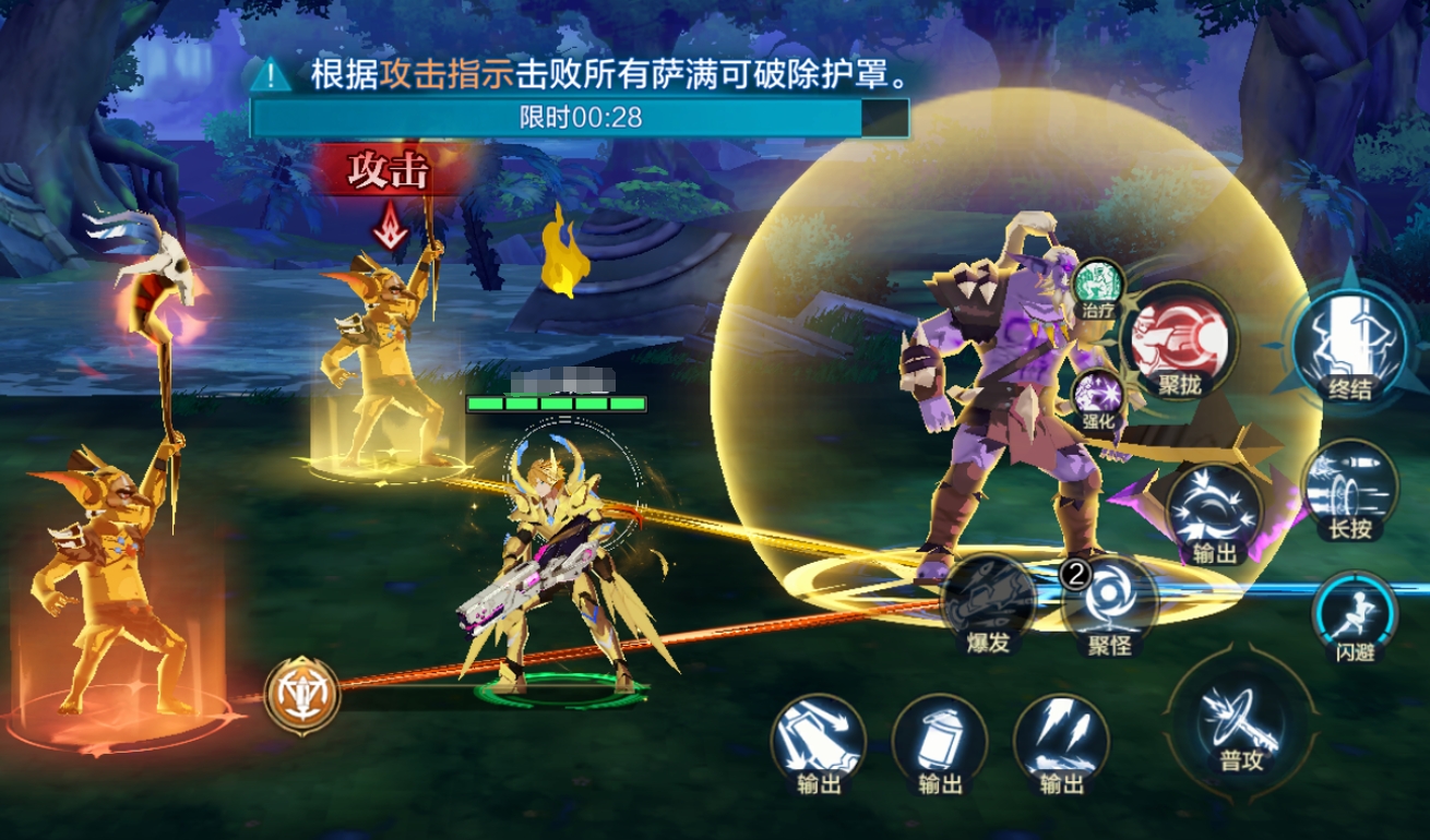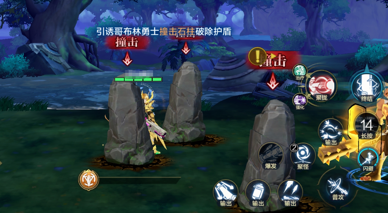 进入第二阶段后,队伍成员重新汇合,共同迎战精英首领——哥布林勇士。该Boss具备双重机制:其一,持续生成六根可破坏石柱;其二,自身携带多层护盾并频繁发动直线冲锋。正确解法为:通过灵活走位引导Boss冲撞石柱,每摧毁一根即削弱一层护盾;待六柱全毁,Boss将陷入强制昏迷状态,护盾同步解除,此时为最佳爆发窗口。