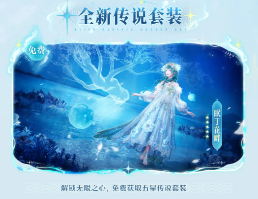 本版本核心新增内容为传说级套装「眠于花畔」,该套装为五星品质,无需通过祈愿抽取或充值解锁,仅需完成“无限之心”系统开启条件即可直接领取,属完全免费获取路径,相较过往需依赖概率抽取或付费直购的传说套装获取方式,此次设计大幅降低获取门槛。