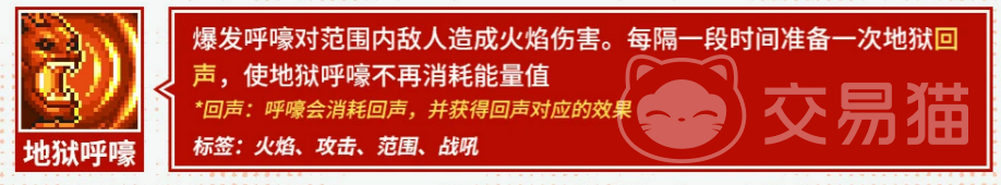 “地狱呼嚎”引入能量循环机制:首次释放造成范围火焰伤害,并开始积攒“地狱回声”;当回声满层后,再次释放本技能将不消耗能量。该设计强调节奏把控,鼓励玩家建立“蓄能—爆发”的稳定循环,避免无序释放导致资源枯竭。
