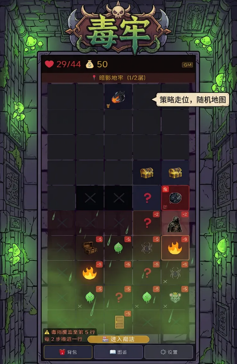 毒牢以卡牌驱动的地牢闯关为核心玩法,玩家需在程序化生成的地图中规划行进路径、拾取稀有卡牌与装备,并实时调整卡组结构,以应对层出不穷的敌对单位和随机事件。这种设计显著提升了单局重玩价值,策略维度丰富,尤其契合偏好多路径解法与长期构筑成长的玩家群体。