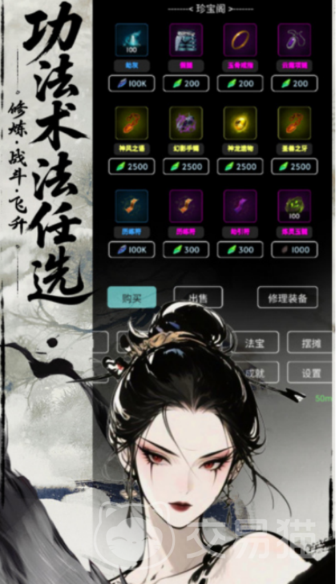 美术层面坚持纯正水墨美学,界面构图借鉴宋元山水意境,技能特效以墨韵晕染、飞白留白呈现,配合古琴箫声背景音效,营造静谧而磅礴的修真氛围。文字内容经专业修真典籍考据打磨,术语体系严谨,剧情密度高,兼顾新手引导与硬核玩家深度阅读需求。看似简约的文字界面,实则承载庞大数值模型与动态事件系统,每一次点击都可能触发隐藏机缘或因果劫数。