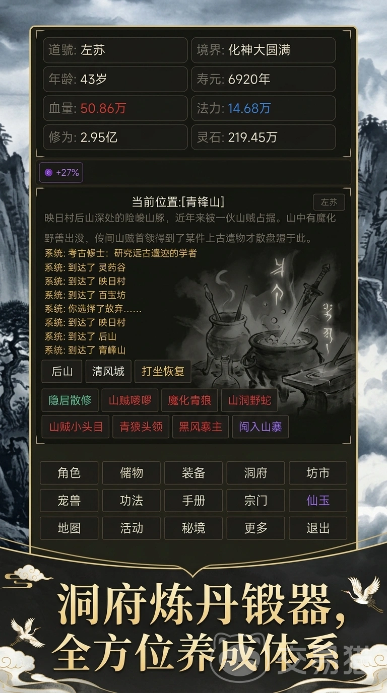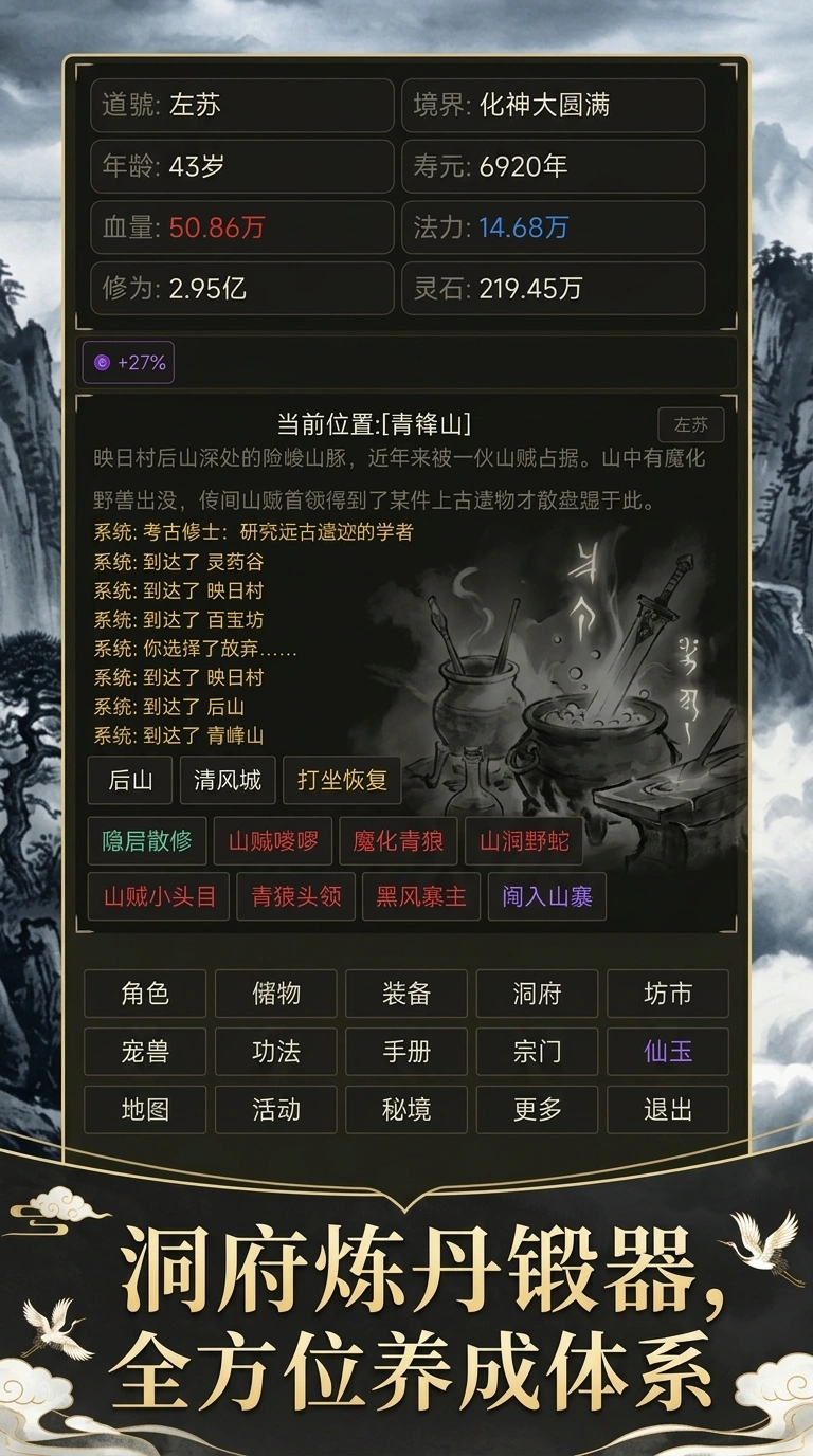 本作以修真世界为背景,深度融合文字交互与轻度策略养成机制。玩家可通过功法研习、丹药炼制、灵器锻造、灵根培育、灵宠契约、洞府经营、秘境探索及心魔渡劫等多元路径推进修行进程,完整覆盖主流修仙题材的核心玩法模块。得益于纯文本驱动的设计逻辑,操作自由度高,策略纵深强,同时大幅降低设备性能门槛。