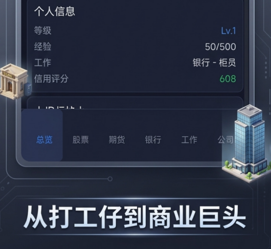 《经济模拟大亨》是一款以真实商业逻辑为内核的深度策略类模拟经营手游。它摒弃了传统挂机式经营玩法,聚焦于资产配置、风险评估与长期战略规划,让玩家在高度拟真的经济环境中,从零起步构建属于自己的商业版图。游戏核心围绕“财富积累”与“商业帝国建设”展开,初始资金严格设定为10万元,玩家需通过审慎的银行理财、阶段性就业积累、实体产业投资及跨领域布局等多重路径,逐步实现资本跃迁。