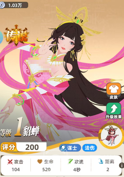 在《王者之弈》当前版本中,传说品质的貂蝉虽非传统意义上的高频率输出核心,但其在谋士体系中的战略价值极为突出。她并非依赖攻速打持续伤害,而是通过多层叠加的团队增益机制,成为谋士阵容成型后的关键枢纽角色。