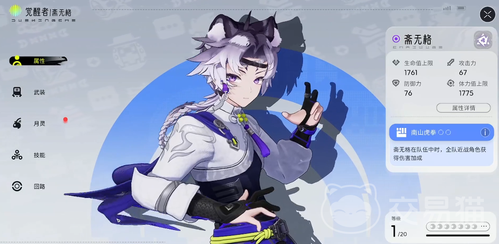 第二位推荐角色是「斋无格」,定位为高流畅度近战物理输出。他拥有五段式拳脚连招,可对目标施加真实伤害。核心机制为【一贯周身】:通过闪避积攒充能,满能后长按普攻开启10秒强化状态,获得30%攻击速度加成与15%金属性伤害提升。配合被动【训示】及雷星增益,攻速可进一步叠加,使其在残血阶段仍具备极强反杀能力。操作容错率较高,适合偏好贴身压制打法的玩家。