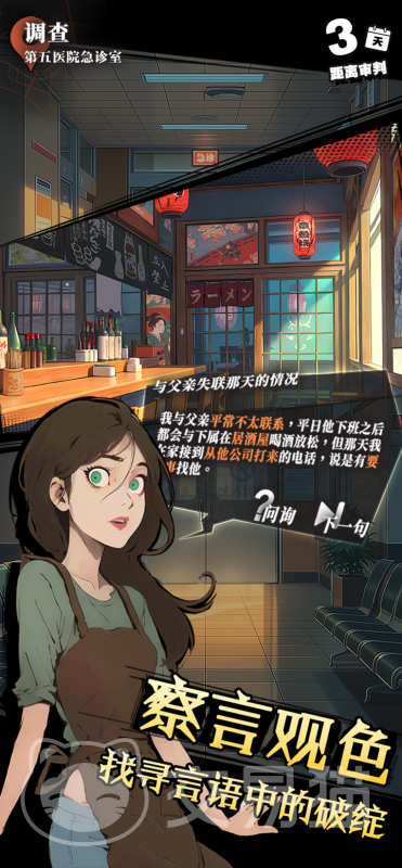 作为纯单机向作品,本作未设置角色养成、战力数值或体力限制等常见手游机制。全部交互聚焦于剧情推进:每位NPC均有独立行为逻辑与隐藏台词,线索散落于对话选项、场景点击与物品组合之中。玩家需通过反复交互、交叉验证与假设验证,逐步拼合碎片化信息。这种设计显著提升了文本密度与思考权重,也意味着游戏节奏完全由玩家自主掌控,无强制引导或跳过机制。