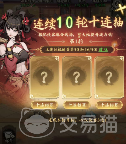 开局阶段,优先锁定“疯狂百抽”活动——这是新手期获取优质侠客最高效的入口。该活动不仅提供高概率抽取SR及以上品质侠客的机会,还同步关联词条任务,完成百连抽后可随机领取一名侠客(不可指定),但整体高级侠客产出率显著优于常规招募。当主线推进至20级时,活动入口将自动解锁,玩家需通过“闯荡江湖”副本持续通关升级。获得主力侠客后,即可投入“游历”系统:该玩法依赖阅历值驱动,而阅历值主要来源于挂机收益。建议前期集中积累阅历,用于刷新更高星级的游历任务,派遣侠客执行后,可稳定获取铜钱、元宝、升品材料及稀有养成资源,为中后期战力构筑打下坚实基础。