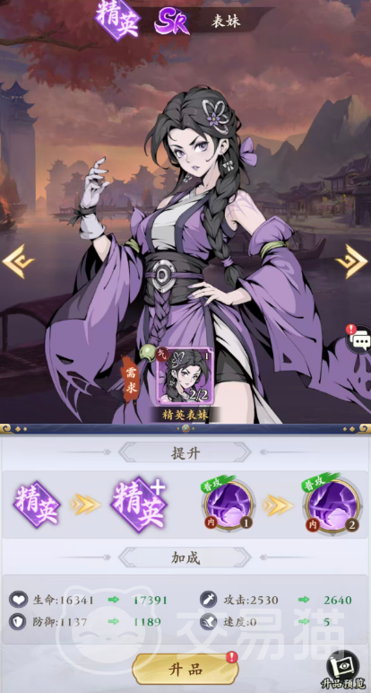 关于侠客品质提升,需特别注意等级与品质的绑定关系:SR侠客最高仅可升至5星;若目标是快速达成1000级,建议先完成升品再集中强化等级,否则等级上限将受当前品质制约。升品材料优先消耗同阶非主力SR侠客,避免误用高阶侠客本体。侠客界面提供“一键升品”功能,操作便捷,但须知被动技能仅在侠客品质达到“传说+”后方可激活,此为硬性解锁条件。