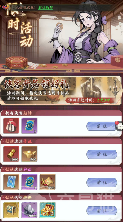 若铜钱储备紧张,可重点完成新手专属任务链。该系列任务难度适中,覆盖常规目标与限时限购两类,其中常规任务奖励已足以支撑前期资源需求;限购任务则需结合自身规划理性选择投入。若追求早期强力战力,推荐通过“无双好礼”活动获取神话品质侠客,此举能显著缩短成型周期。