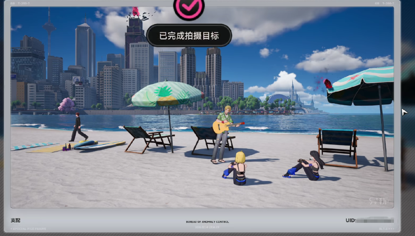 第一阶段目标位于海特洛市海滨区域:沿沙滩步行至露天太阳伞下方,对正在弹奏吉他的街头歌手进行拍摄,即完成首张影像采集。注意须返回菲林轨迹照相馆提交成果,方可解锁后续环节。