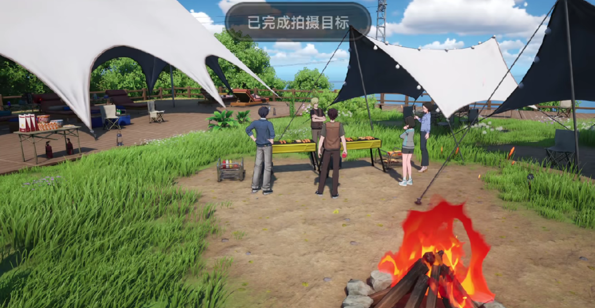 第二阶段前往湛望露营地:推荐使用rerorero电话亭传送点,出传送门后沿主干道下行,接近任务标记位置时,对围坐在篝火旁烤肉的群体进行取景,即可达成第二张定格。