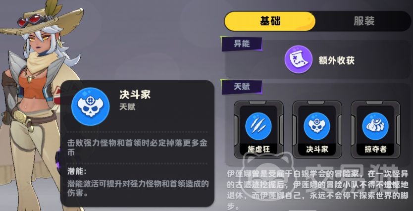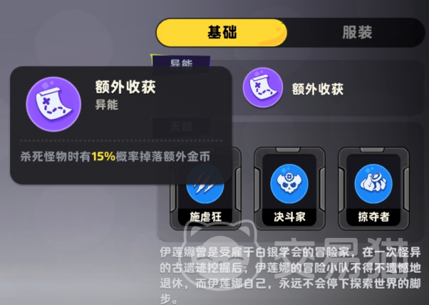 需特别注意:伊莲娜经过多次平衡性调整,当前版本能力已与初始设计存在显著差异。其异能效果并非直接激活,而是高度依赖外部条件触发——即通过击杀敌人获取额外收益后,反哺自身战斗循环。具体而言,每次击杀怪物时,她有15%概率额外掉落金币,该机制稳定提升中期至后期的场内经济容错率,为武器合成、多武器切换及高阶装备置换提供关键资源支撑。