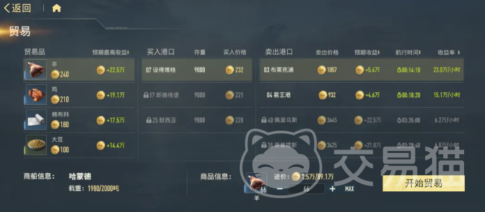 金币获取方面,远洋贸易系统在中后期贡献率远超港口税收。该系统开启后,玩家可派遣货船执行跨港运输任务,结算收益与单次载货量直接挂钩。初始提供两艘货船,随等级提升可扩展运力上限。为优化前期金币转化效率,应优先升级大型货船等级,并选择航程短、单价高的贸易航线,确保单位时间收益密度最大化。货物装载量即为当次航行金币基数,货船等级越高,单次满载能力越强,总收益曲线呈阶梯式上升。