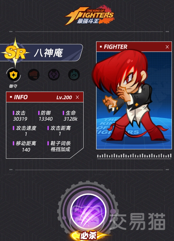 八神庵的天赋机制尤为关键:每次造成伤害后,可使目标在5秒内治疗效果降低20%,实质增强全队持续作战能力;当升至SSR品质时,更可释放标志性紫色雷火技能,对移动单位实施精准打击,同时生命值与破甲属性同步成长,进一步巩固其战场存在感。