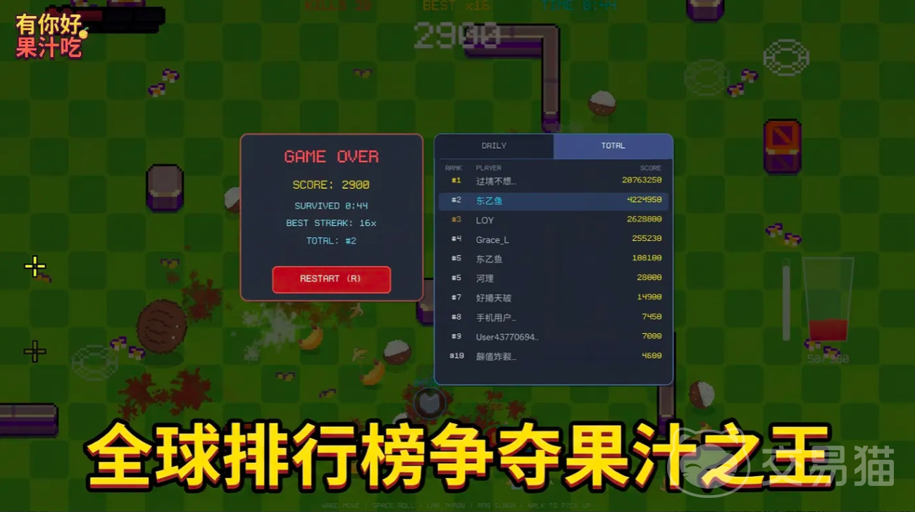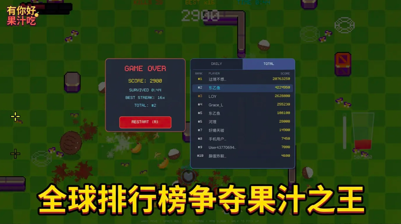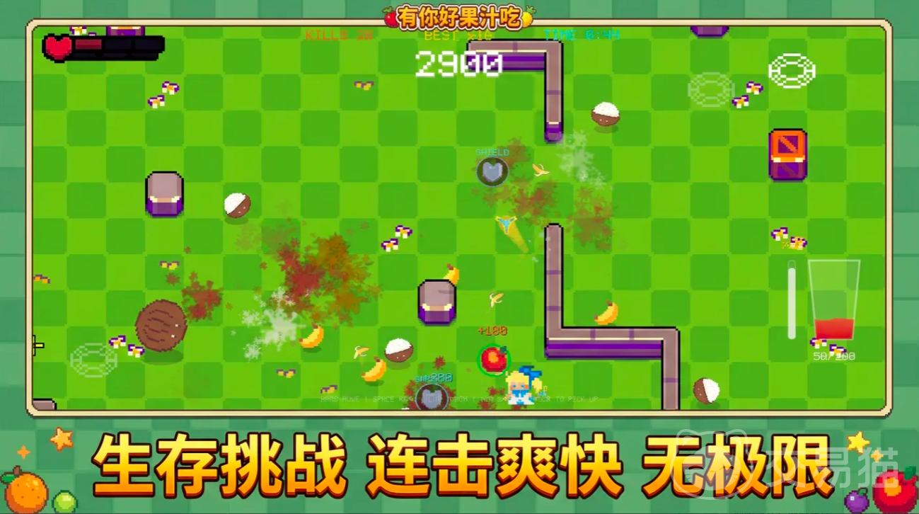 区别于传统高门槛动作游戏,《有你好果汁吃》采用极简上手设计:进入对局即刻开砍,无需冗长教学。在前期测试中,许多玩家反馈其节奏紧凑、单局时长短,极易“再来一局”,形成自然的沉浸式循环体验。