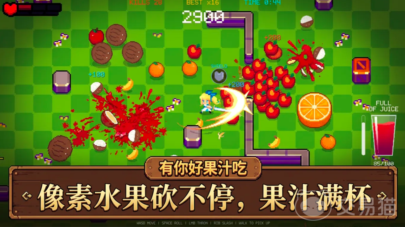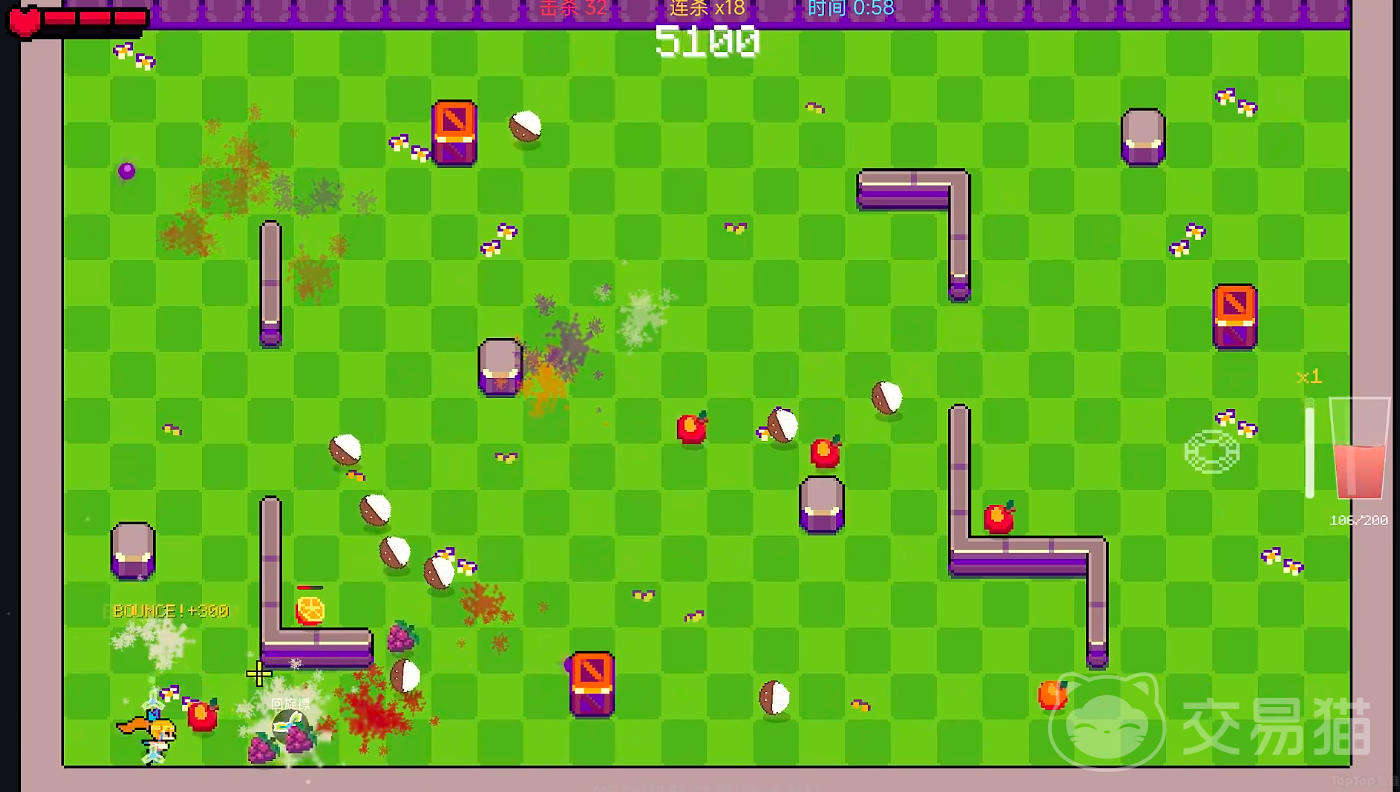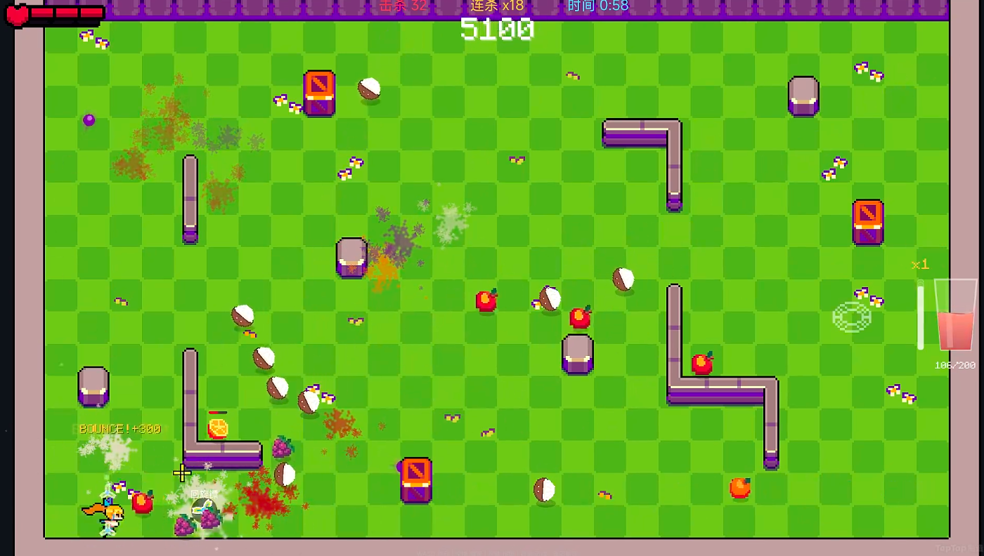 尽管未设置传统意义上的恐怖型Boss,但关卡难度曲线经过精细调校。葡萄等水果敌人具备多段攻击模式,玩家需在反复实战中提升走位精度与反应预判能力,逐步掌握“闪避—蓄力—暴击”的操作闭环,感受高速对抗中的暴力美学。
