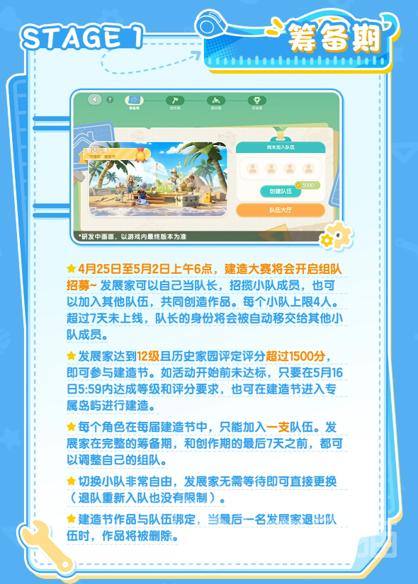 活动采用分阶段推进模式,整体周期覆盖4月下旬至6月下旬,横跨两个多月。对于热衷家园设计与协作搭建的玩家而言,这是一次不可多得的深度参与机会。建议提前联络志同道合的伙伴,组建高效团队,共同投入创作。