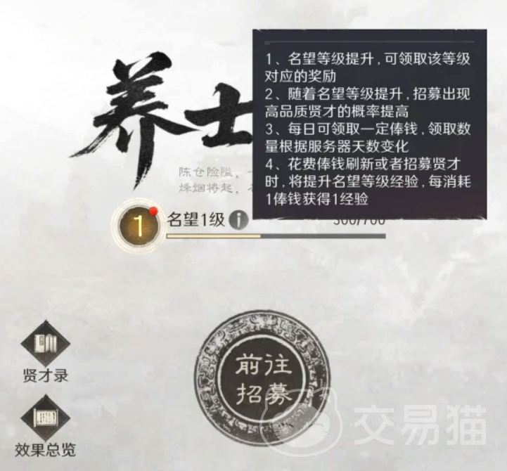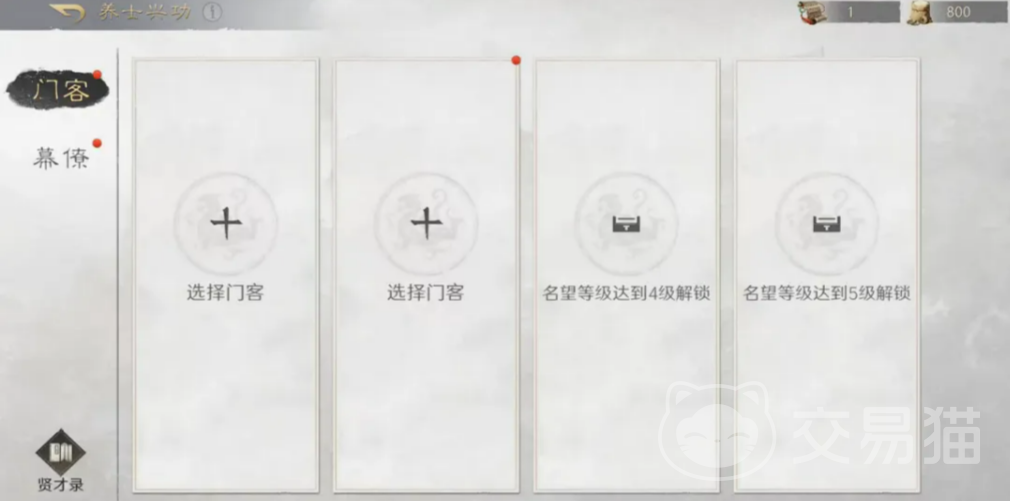 门客系统采用名望等级驱动解锁机制,初始仅开放部分槽位,随名望提升逐步扩展。任命门客后,对应槽位进入24小时锁定状态,期间不可更换人选。特殊情形下:若当前槽位门客尚未生效,且持有同名但品质更高的贤才,可即时替换,无需等待冷却,此为关键操作要点。