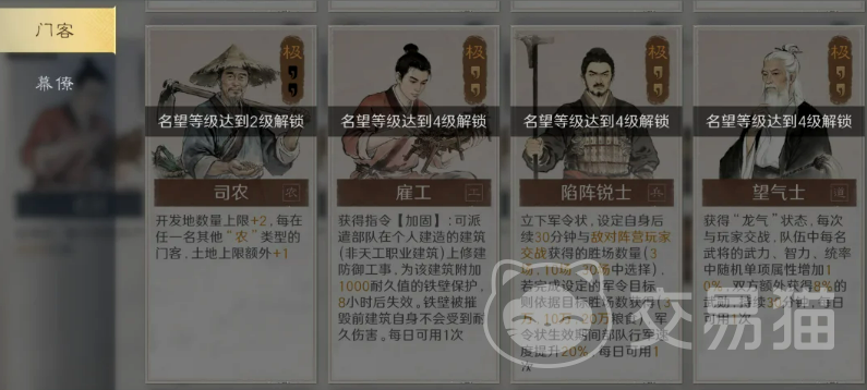 本季共开放33种门客与14种幕僚,数量丰富但并非堆叠即可生效。门客选择需严格匹配当前发展阶段,避免盲目追求高阶品质;幕僚配置应紧扣主力武将特性与战法体系,切忌强行拼凑组合,否则易导致增益错配、实战效能下降。