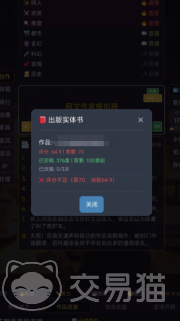 每部作品发布后,将实时反馈阅读量、收藏数、评论互动等数据,并折算为游戏内收益。玩家可使用资金投入推广资源位,提升曝光率;也可用于装修升级、购买灵感道具或参与行业活动。当作品热度达到阈值,将触发“签约事件”——多家虚拟文学平台发起邀约,签约成功后稿费、全版权分成等收入将显著提升。此外,参与限时主题活动还有机会赢得专属成就与声望加成。