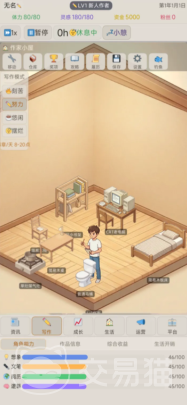 进入游戏后,玩家需首先完成基础写作空间的布置与升级——包括书桌、台灯、书架等关键家具的添置与装饰。环境舒适度将直接影响角色灵感值与写作效率。随后,玩家需结合实时更新的“市场热度榜”,选择当下高潜力题材(如玄幻、都市、言情、科幻等),设定小说名称、核心人设及故事大纲。系统将基于设定自动生成章节内容,无需手动输入文字。
