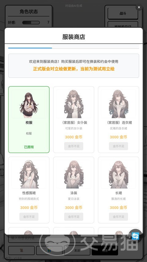 金币充足后,进入主界面或聊天窗口,点击“商店”标签即可浏览全部可购商品。当前商店提供巧克力、甜品、书籍、礼品卡等品类,所有物品均需使用金币购买后方可赠送。不同物品对应的好感度加成存在显著差异:例如甜品固定增加4点好感度,而模拟考试书籍则会降低4点好感度,选择前务必确认属性数值,避免负面反馈。