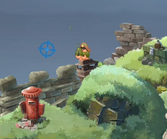 中距离交火(约3–6格)是技术含量最高的阶段。风向变化与弹道抛物线在此区间影响最为显著,计算误差将直接导致攻击失效。在武器选择受限的前提下,火箭炮是最稳定可靠的中距输出手段——其弹道轨迹平直、伤害集中,且不易误伤自身。若敌方藏身掩体后方,可先以火箭炮清除障碍,再配合手雷进行覆盖打击。同时需密切关注地图内武器箱分布,前期及时拾取可快速补强装备组合,为后续战术转换争取主动权。