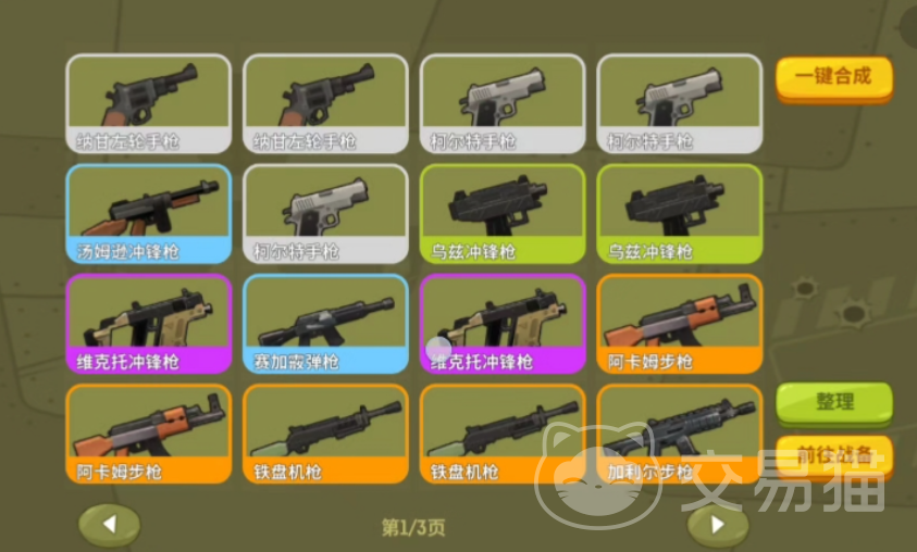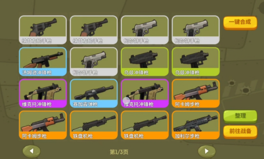 游戏内武器共设六档品质,由低至高依次为白、绿、蓝、紫、橙、红。加特林作为高稀有度装备,实际产出概率随合成原料档位提升而显著增加。强烈建议使用至少四档(紫色)及以上品质的武器进行合成。若仅有两把达标武器,不建议立即合成;优先积累第三把同档位武器,可支持多轮尝试,避免因单次失败导致关键战力空缺,影响后续关卡推进节奏。