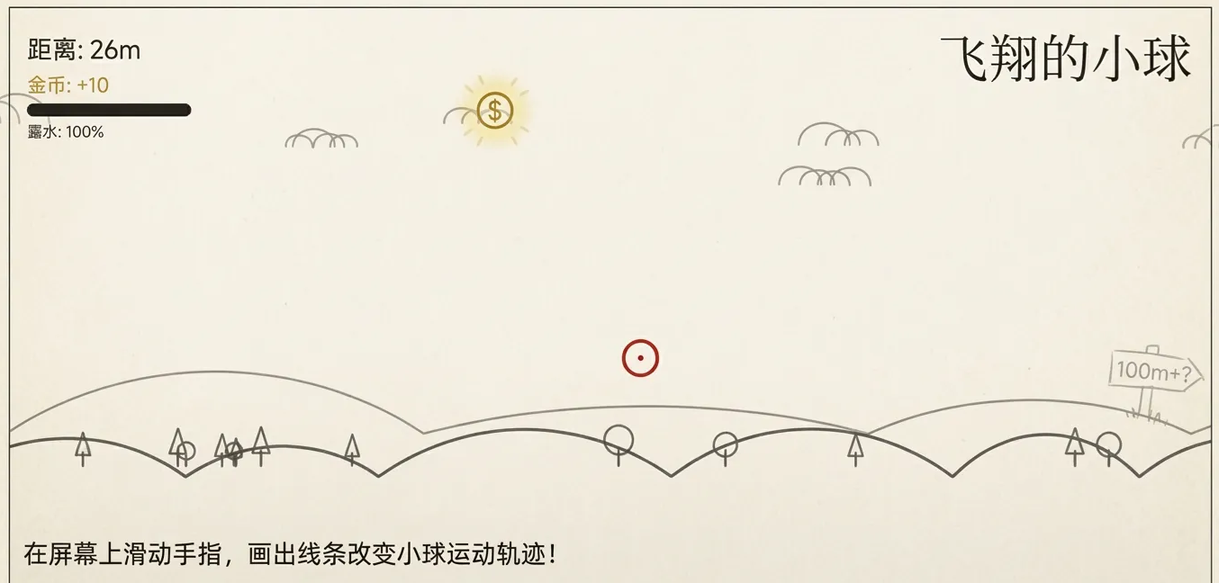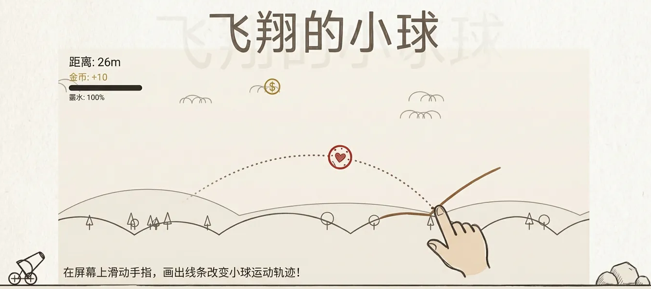 游戏的核心玩法明确:玩家通过操控大炮发射小球,在飞行过程中实时绘制引导线,改变其运动轨迹,从而精准触碰金币、避开障碍,并持续延长飞行距离。整个流程围绕操作反应、预判能力和路径规划展开,关卡进度完全依赖玩家技巧提升,不存在付费解锁章节、强制购买通关道具或数值压制型内购设计。