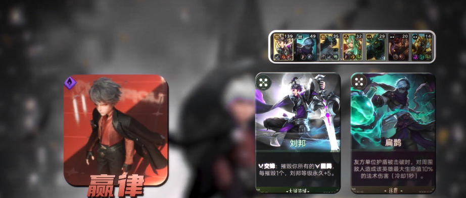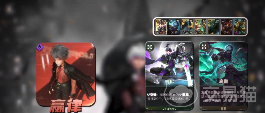 该流派的核心机制在于:嬴律提供空降人才能力,使首张4阶或5阶英雄牌直接觉醒;刘邦则通过摧毁图腾获得等级跃升——每摧毁1个图腾,自身等级永久+5。因此前期需优先构建“嬴律+刘邦+3张可召唤图腾英雄”的基础框架。开局若未抽到空降人才,建议优先拿取风险对冲卡过渡;而固定收益类卡牌优于投资增值类,因其不依赖升级即可每回合稳定提供能量,更契合前期发育节奏。此外,首回合可考虑入手弈星提升行动效率,其每次升级额外+2经验,利于快速积累战力。